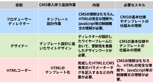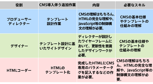 まだCMS導入に慣れていないWeb制作会社が始めてCMSを導入する場合は、CMSベンダーがどこまでサイト構築時にフォローをしてくれるかなどを確認したほうがよいと思います。同じく、CMSベンダーはCMS導入時に一緒に組むWeb制作会社に対し独自テンプレートに対する説明や、システム条件、またそのCMSの制限事項をしっかり説明することが必要ですね。