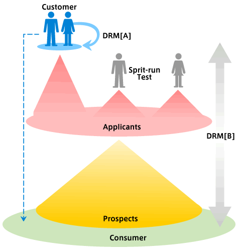 話を戻すと、つまりこの二つの過程をを[B](Consumer)→[A](Customer)と連動させて、はじめて効果のあるDRMフローが完成するのだというのが筆者の考えです(限りなくCRMに近いと思いますが)。