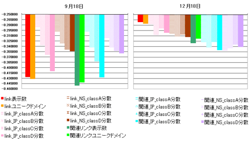 - link_NS_classA~D分散:linkユニークドメインのネームサーバーのIPを各classまでの単位で重複削除した数