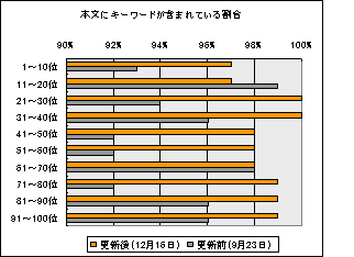 - 検索ページ全般で、検索キーワードの含有率が跳ね上がる。