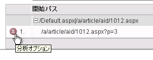 (4)3番目に移動したページの一覧が表示されました。ここで「+」の表示がなくなったので、4番目に移動したページはないということになります。続いて、画像を参考に「分析オプション」のボタンをクリックします。