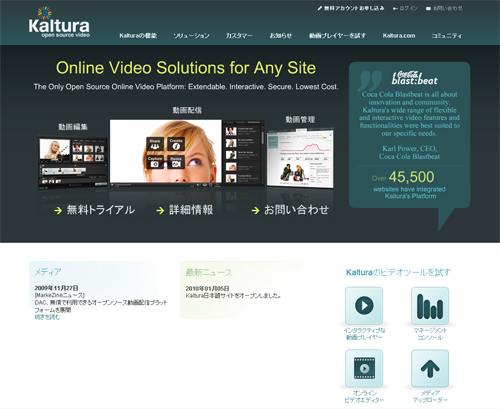 このKalturaは、2009年11月に日本のメディアレップであるデジタル・アドバタイジング・コンソーシアム株式会社(DAC)と提携し、日本における動画市場の拡大やオープンソース版のコミュニティの拡大に乗り出しています。