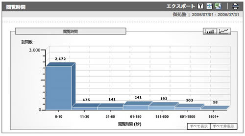 「閲覧時間」では、サイトの滞在時間を表示します。