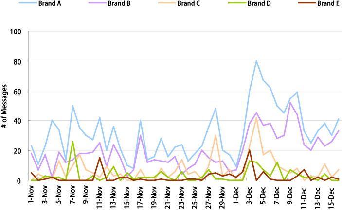 ブランドにおけるトピックをカテゴリー別に分類し、よく語られているトピックを分析