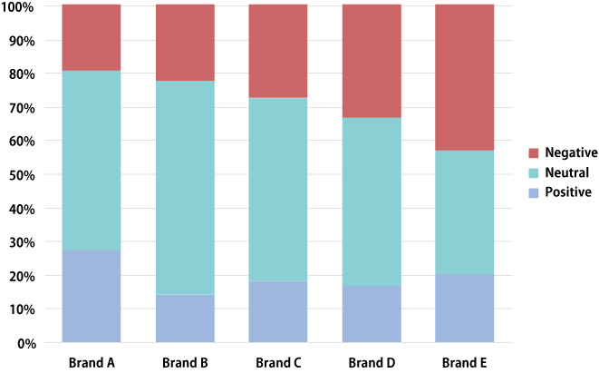 ブランド名が記載された口コミのセンチメント(好意度)を、ポジティブ/ネガティブ/ニュートラルの3分類で分析