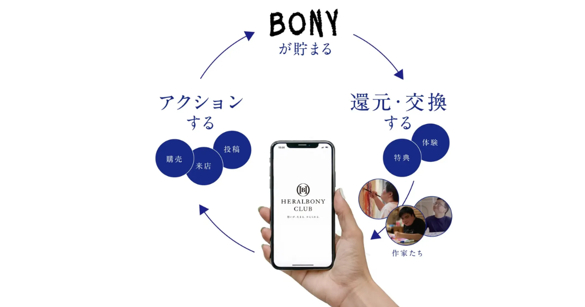 ヘラルボニーは、障害のある作家のアートを通じて社会と福祉を繋ぐ企業であり、日々多様な形で同社の活動を支えてくれるファンとの絆をより深めるために、「HERALBONY CLUB」を開始した。同プログラムでは、ファン一人ひとりのアクションを「BONY(ボニー)」というマイレージで蓄積し、適切に報いることで、ブランドとファンの新しい循環を創出していく。また、貯まったBONYはクーポンなどへ交換できるだけでなく、今後は「ヘラルボニーの契約作家のために使う」ことができる還元機能も開発する予定だそうだ。